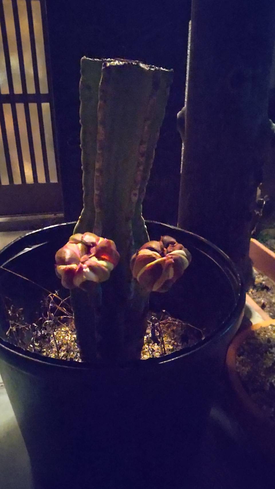 夜 実家の柱サボテン